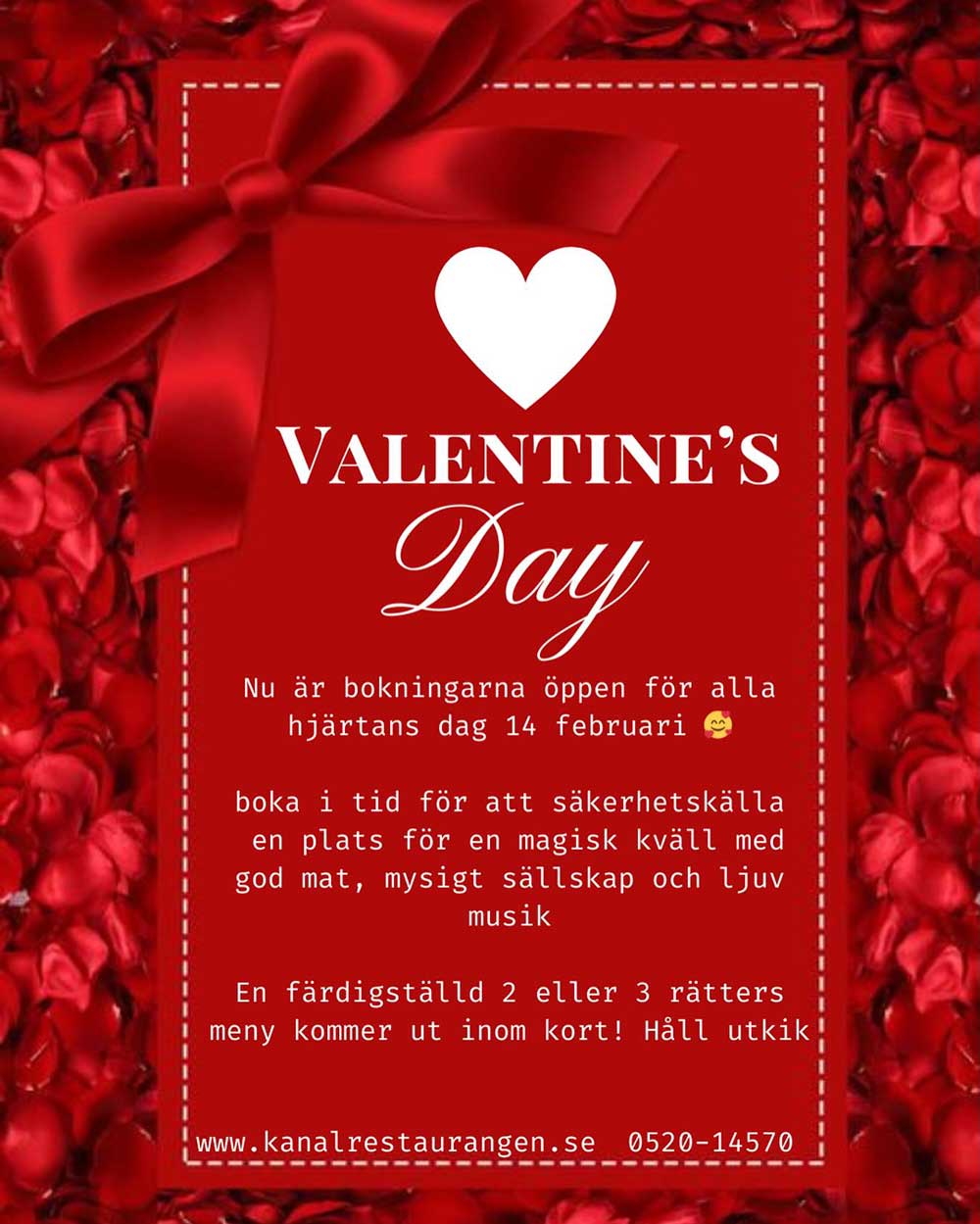 Nu är bokningarna öppen för alla hjärtans dag den 14 februari! 🥰